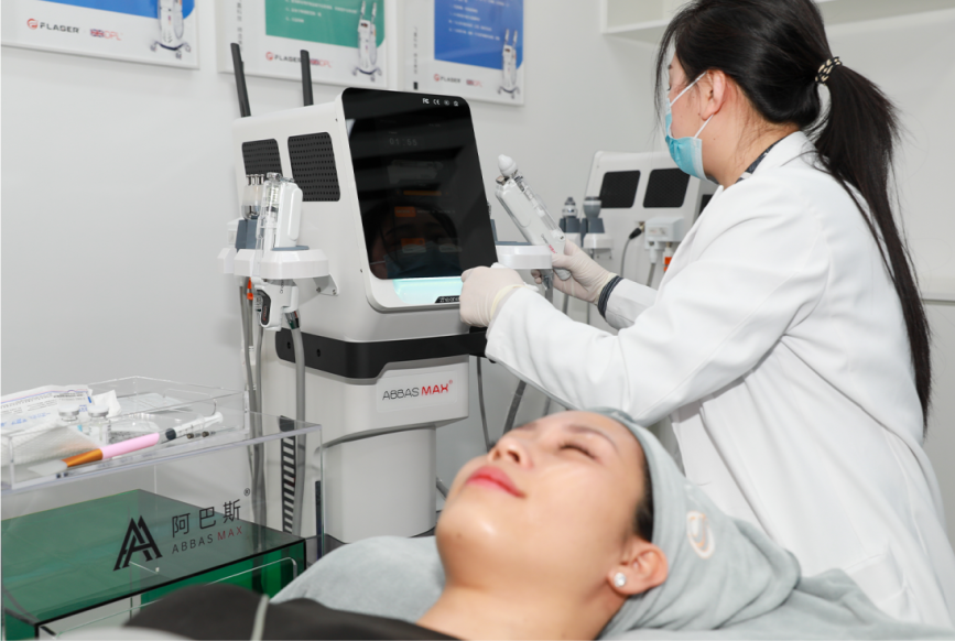 為了讓國(guó)際客戶深入了解飛嘉的產(chǎn)品實(shí)力和創(chuàng)新理念,除了專屬導(dǎo)師的線下講解外,飛嘉也為所有參觀者特別安排了儀器體驗(yàn)環(huán)節(jié)。在體驗(yàn)過(guò)程中,飛嘉旗下生美品牌--阿巴斯收獲了大量贊譽(yù)與好評(píng)。明星雙機(jī) ABBAS MAX®及 ABBAS PLAS®也以“加”與“減”的先進(jìn)理膚理念、即刻的理膚效果,成功推進(jìn)海外參觀者與飛嘉集團(tuán)深入合作的信心。